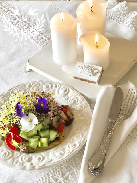 Jeg spiser det jeg kan lide, og det er så så heldigt at det er mere over i det "grønne" og salte køkken der skaber glæde i mig. Jeg elsker når maden er farverig og smukt balanceret.